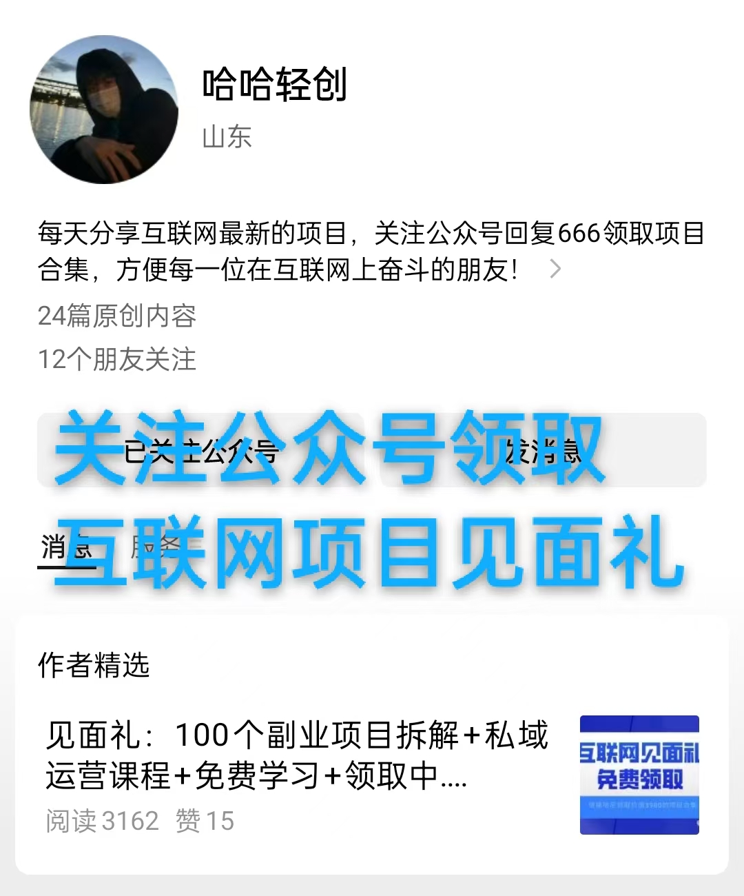 公众号:哈哈轻创(每年分享超100个创业项目)